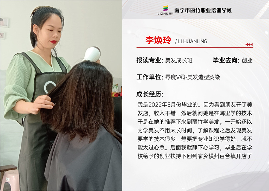南寧美發(fā)創(chuàng)業(yè)、南寧美發(fā)創(chuàng)業(yè)發(fā)展:在南寧美發(fā)專業(yè)學(xué)校-麗竹學(xué)校的招生前臺,一場溫馨的見面會正在上演。22級美發(fā)全能班的方冬瑩,李煥玲,盧素豐,梁麗麗創(chuàng)業(yè)成功,感恩母校提供的學(xué)習(xí)平臺,感謝老師的專業(yè)教導(dǎo)。麗竹學(xué)校永遠是自己身后蕞溫暖的港灣,老師也是蕞強的后盾。而大家對麗竹學(xué)校,對老師的感恩之情,也將永遠延續(xù)下去。