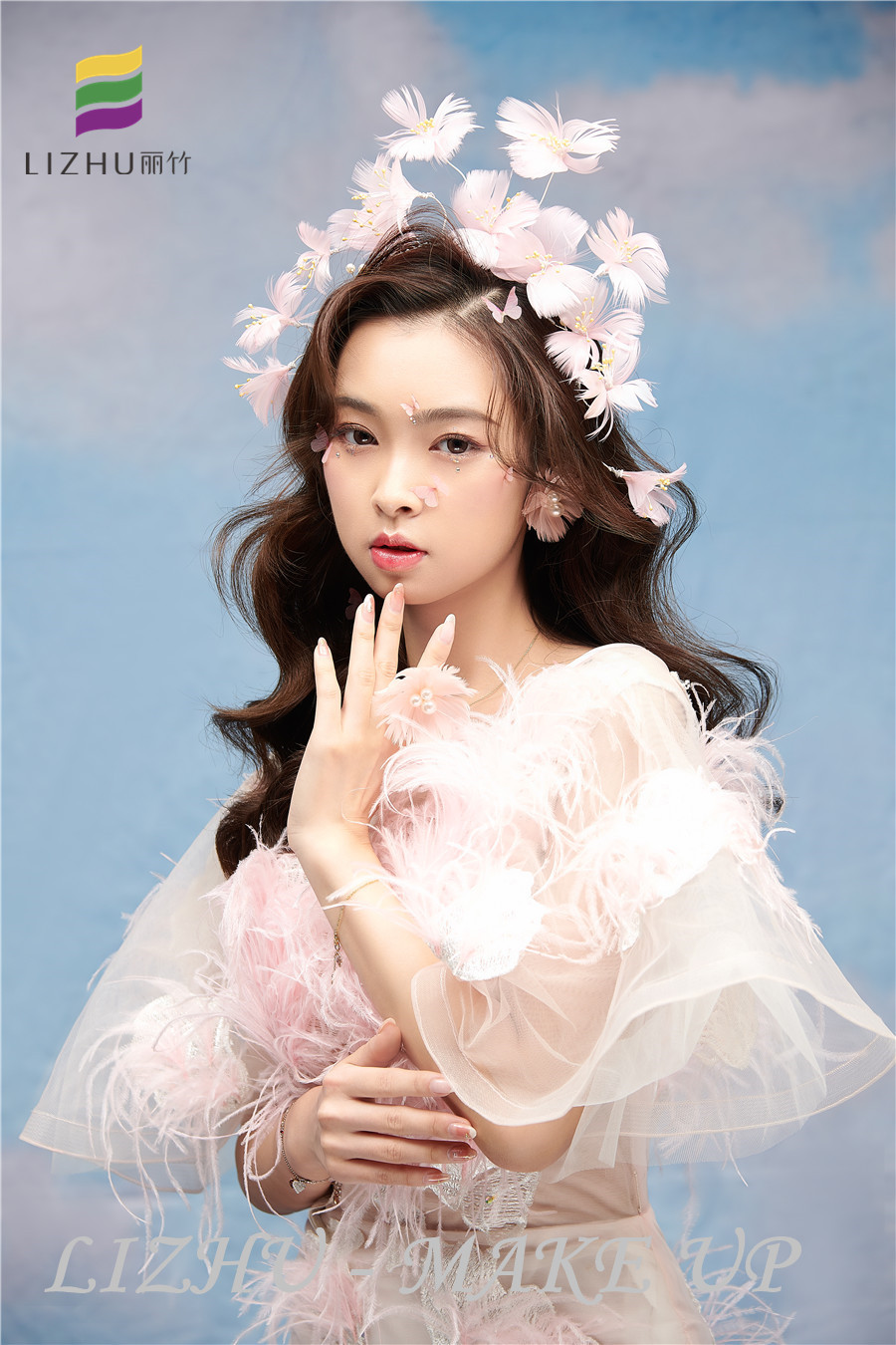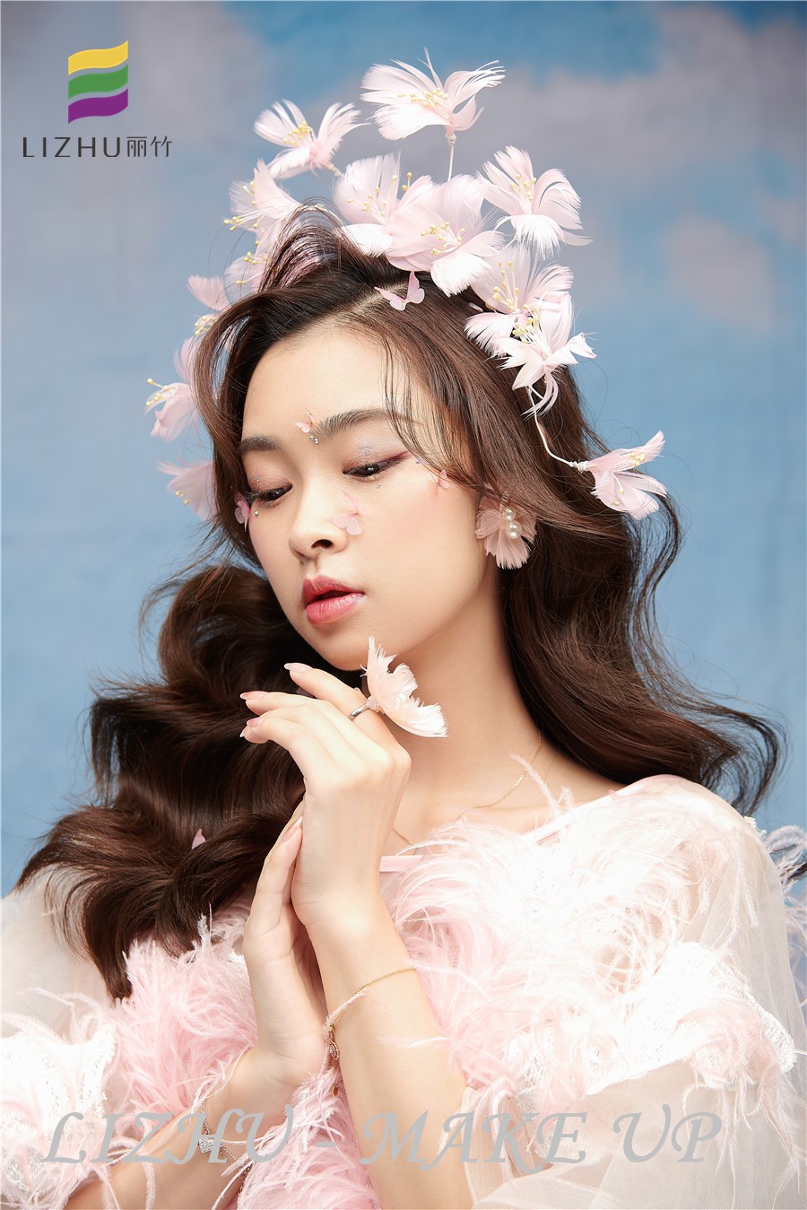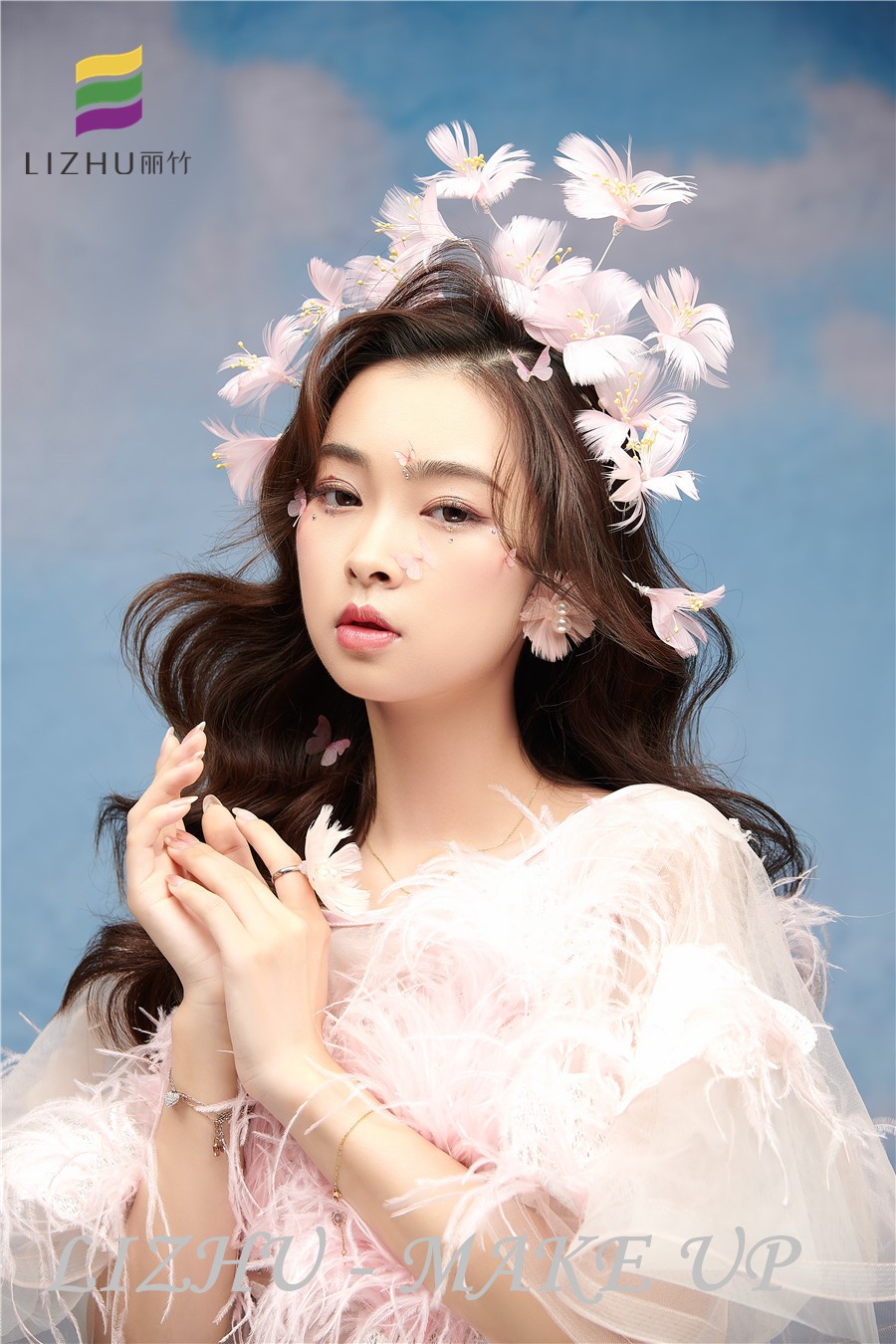 南寧化妝職業(yè)培訓學校、南寧化妝培訓學校排名、南寧化妝學校十大品牌分享:優(yōu)雅清新的披發(fā)造型,搭配粉色羽毛頭飾與紗群,粉色蝴蝶視頻點綴妝容,整體甜美又仙氣飄飄。