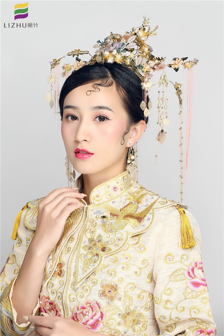 南寧麗竹化妝學(xué)校作品---中式復(fù)古造型。婉約典雅,配上搖曳的鎏金頭飾,面上略施粉黛, 一抹朱唇紅艷,幾分婉約賢淑,幾分典雅大氣,精致的中式新娘造型!