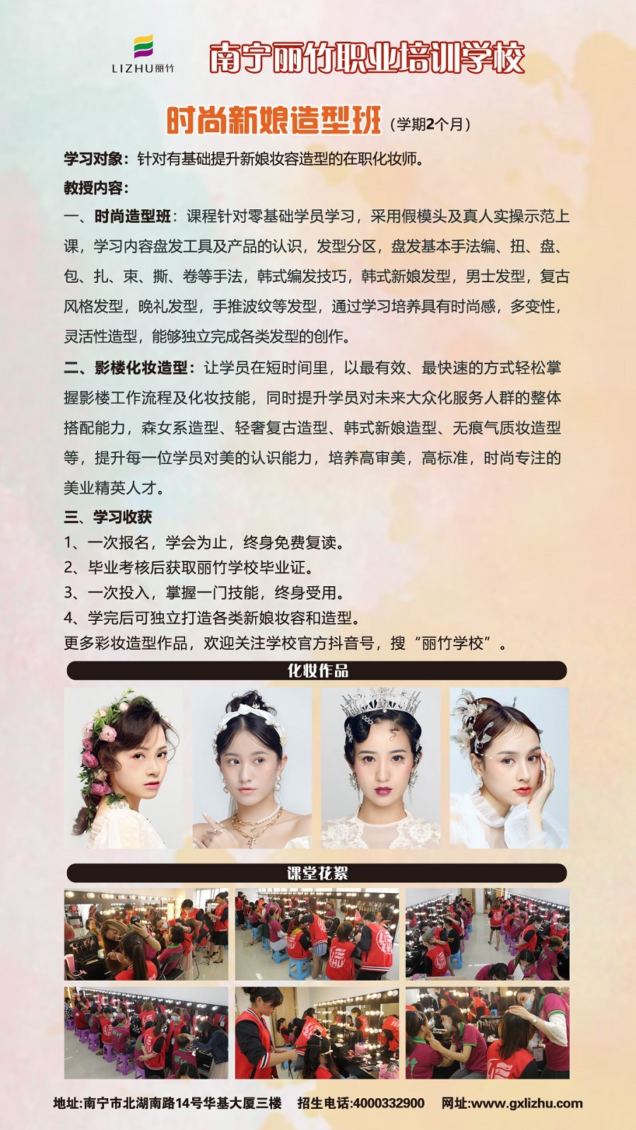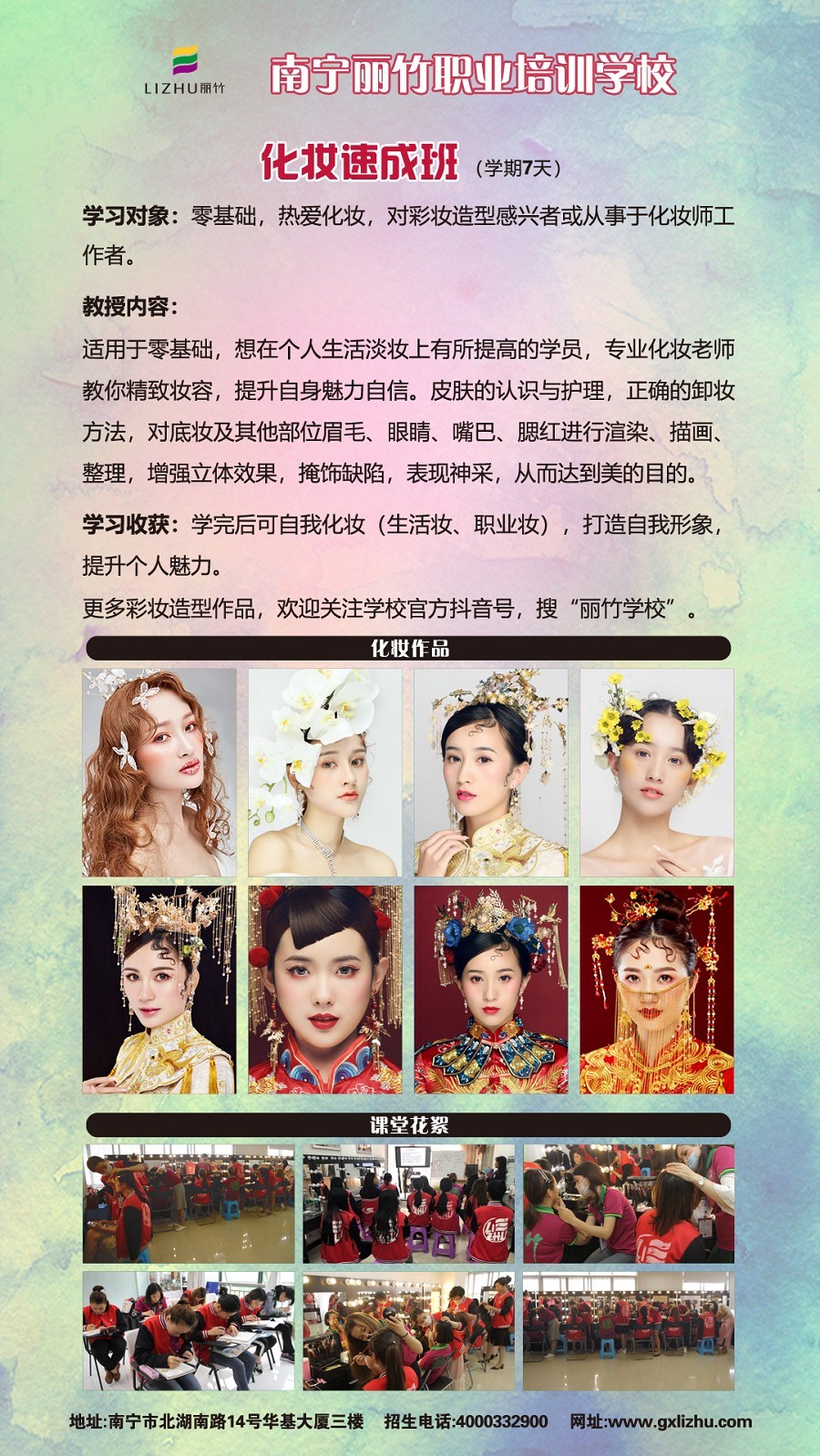 南寧麗竹化妝學(xué)校分享:努力不一定能帶來(lái)成功,但是一定能帶來(lái)成長(zhǎng)。未來(lái)的你,一定會(huì)感謝現(xiàn)在拼命的自己!課程報(bào)名現(xiàn)已經(jīng)開(kāi)啟,有了目標(biāo)的你可以通過(guò)以下方式了解課程相關(guān)事宜。