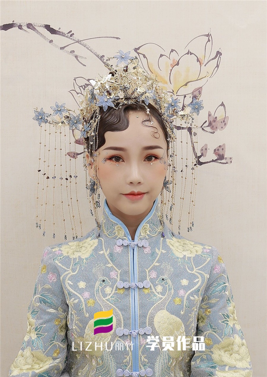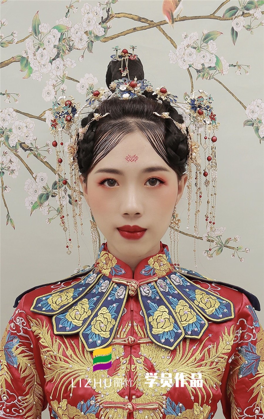 南寧化妝學(xué)校分享:裊娜少女羞,歲月無憂愁,中式新娘驚艷的一抹刺繡,精致典雅,演繹中國風,優(yōu)雅的盤發(fā)搭配精致的發(fā)飾,一身華服,正是芙蓉不及美人妝。