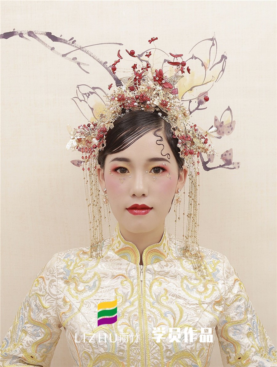 南寧化妝學(xué)校分享:裊娜少女羞,歲月無憂愁,中式新娘驚艷的一抹紅,精致典雅,演繹中國風,優(yōu)雅的韓式盤發(fā)搭配精致的發(fā)飾,一身紅裝,正是芙蓉不及美人妝。