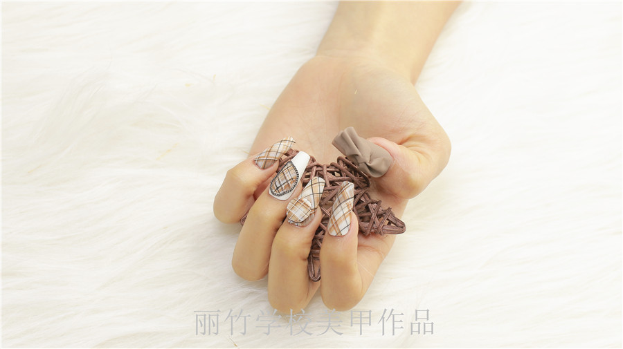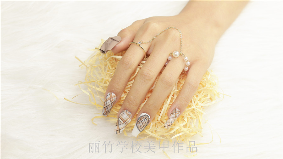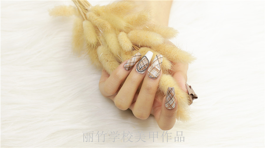 南寧美甲培訓(xùn)學(xué)校哪家好?請(qǐng)看麗竹學(xué)校美甲作品:格紋美甲
