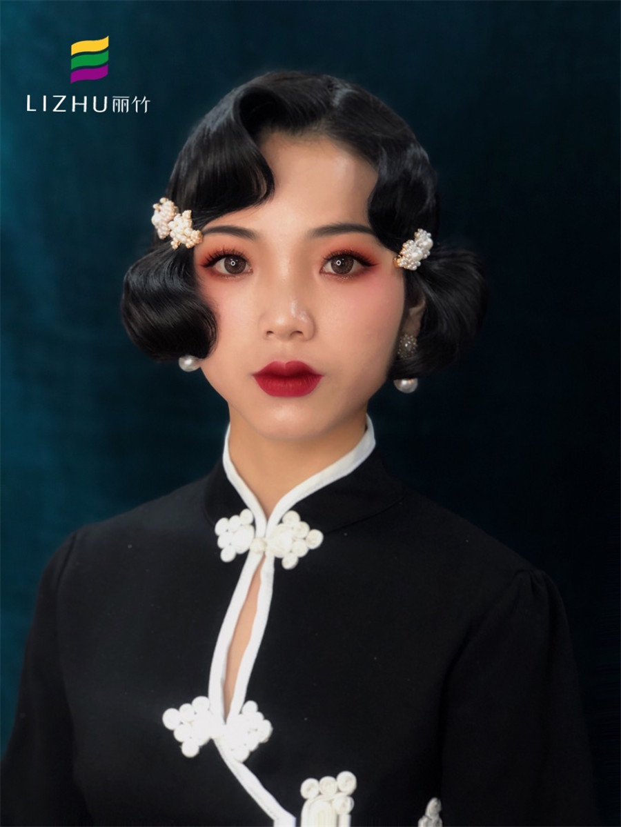 流暢圓潤的復(fù)古手推波發(fā)型