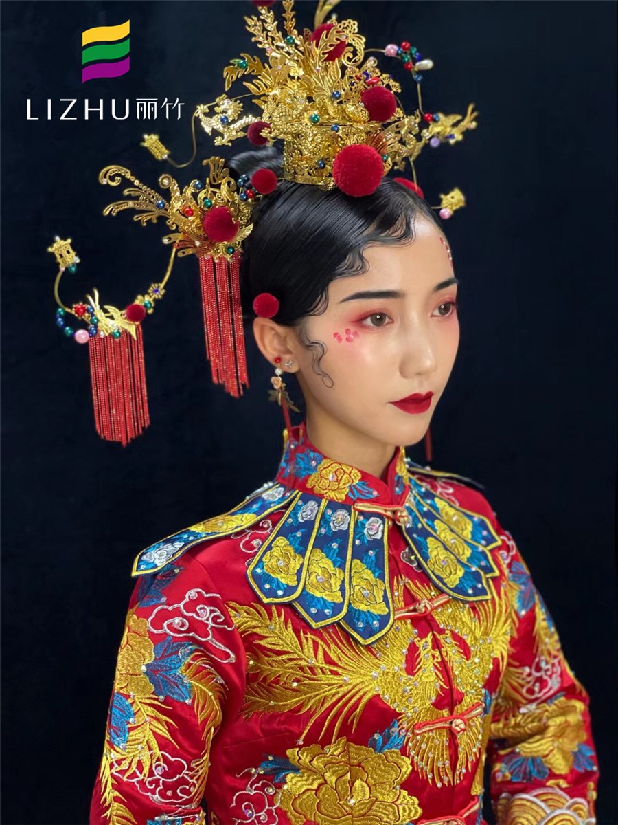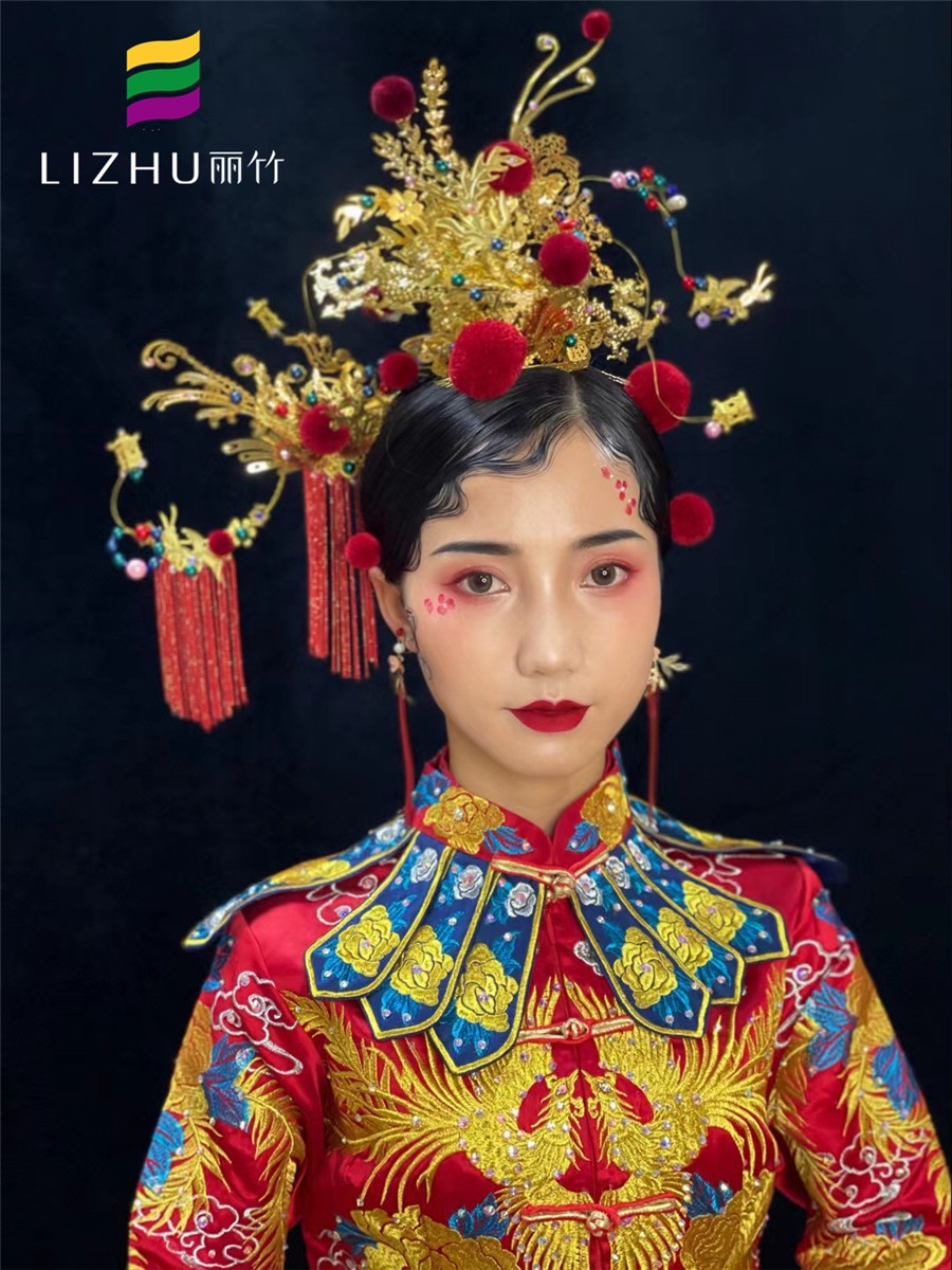 廣西彩妝造型學(xué)校(麗竹彩妝學(xué)校)作品---中式新娘造型:紅裳霞帔步搖冠,鈿瓔累累佩珊珊。金釵紅妝,纓絡(luò)垂旒。傳統(tǒng)與現(xiàn)代時尚的結(jié)合,演繹傳世經(jīng)典,打造優(yōu)雅中式新娘。