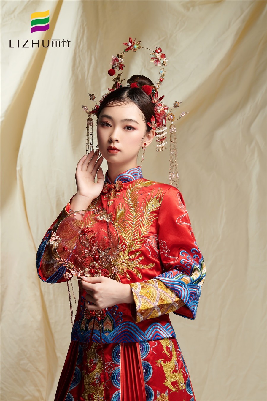 廣西彩妝培訓(xùn)學(xué)校(麗竹彩妝培訓(xùn)學(xué)校)---中式秀禾新娘造型:紅裳霞帔步搖冠,鈿瓔累累佩珊珊。金釵紅妝,一生一世中式溫婉,打造端莊秀氣優(yōu)雅中式新娘。