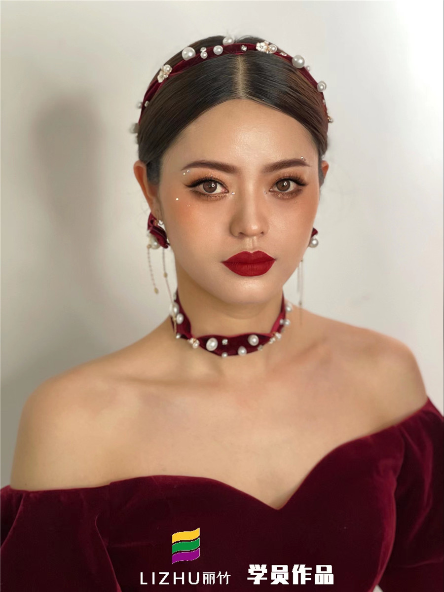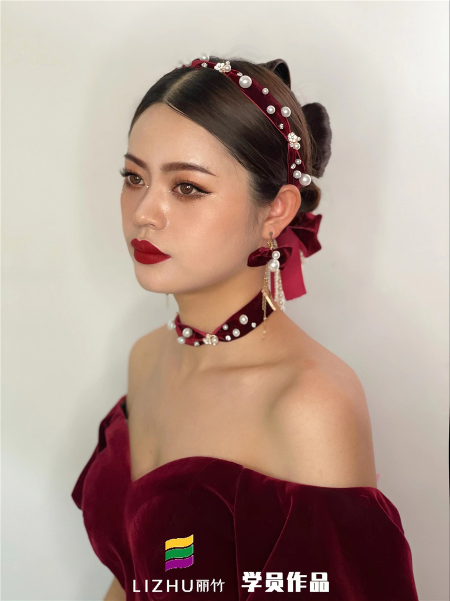 學新娘妝到哪里學?來看看麗竹彩妝學校學員作品:輕復古風系列造型(二)