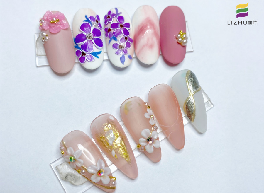 南寧美甲學校哪家好?麗竹學校學員用作品證明實力:彩繪立體雕花美甲(三)