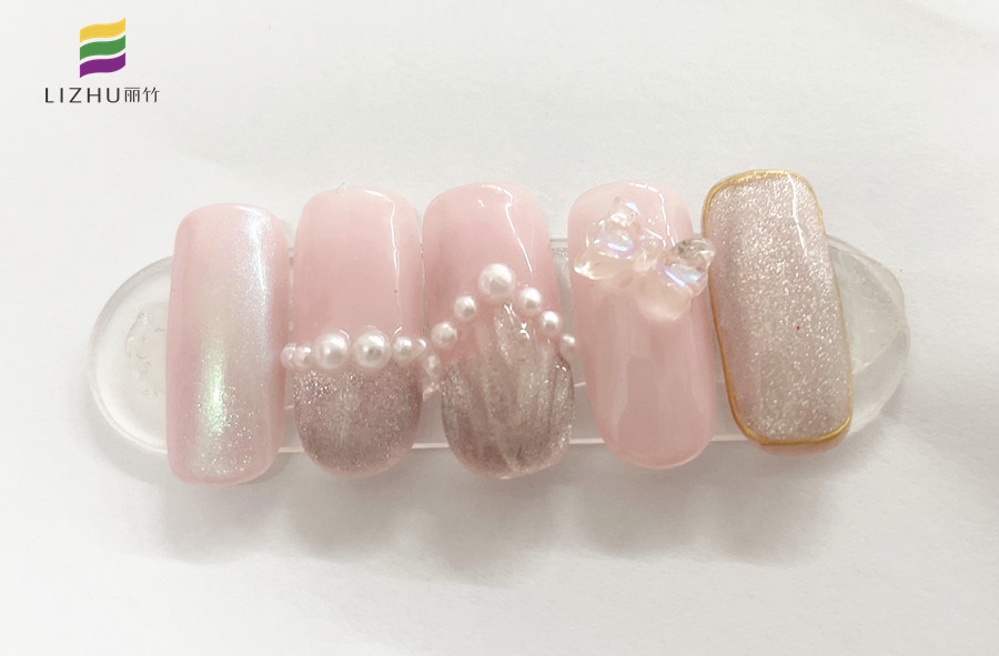 如果你舉辦的是浪漫的西式婚禮,那么這款以粉色作為主色調(diào),加上如銀河般的閃粉膠做襯托,將潔白無暇的珍珠以及裸粉透明色蝴蝶視頻點綴于甲片上新娘美甲,將會更加凸顯你的氣質(zhì)優(yōu)雅以及甜美氣息。