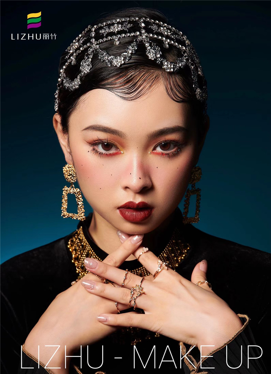 廣西彩妝化妝造型學(xué)校、廣西彩妝培訓(xùn)短期班作品---輕歐美妝容造型:自然而日常的妝容畫法,打造色彩濃烈的結(jié)構(gòu)式眼妝,加上重金屬blingbling飾品搭配,奢華復(fù)古又有微微野生感。如果你想在廣西學(xué)專業(yè)彩妝,那么歡迎你到廣西彩妝學(xué)校十大品牌-廣西彩妝師培訓(xùn)班(麗竹彩妝師培訓(xùn)班)參觀試聽!