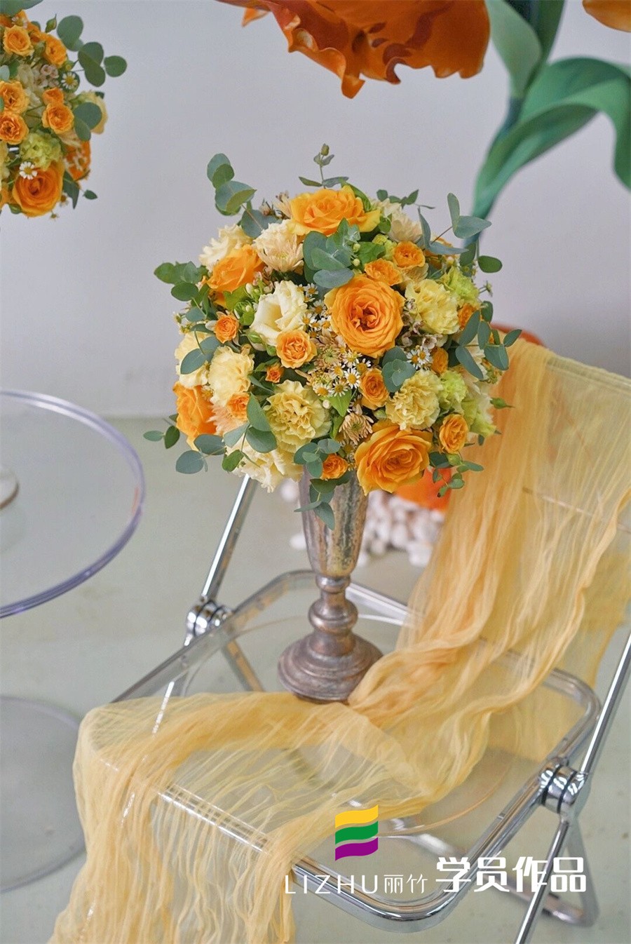 南寧花藝學(xué)校排行榜分享作品:半球形桌花(一)