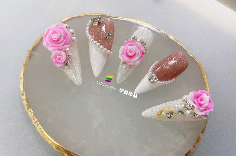 廣西美甲學(xué)校哪家好?麗竹學(xué)校學(xué)員用證明實力---玫瑰雕花美甲(一)