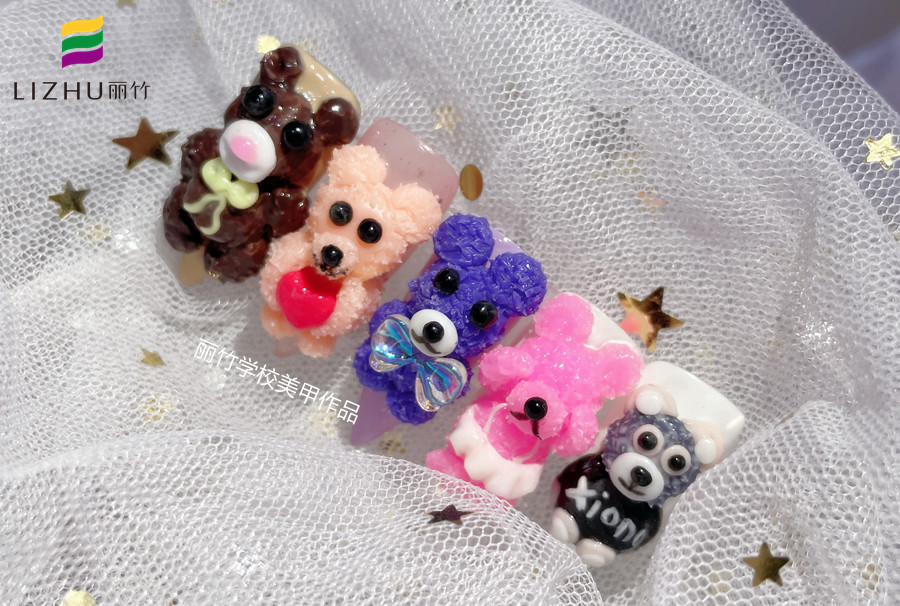 可愛熊雕花美甲