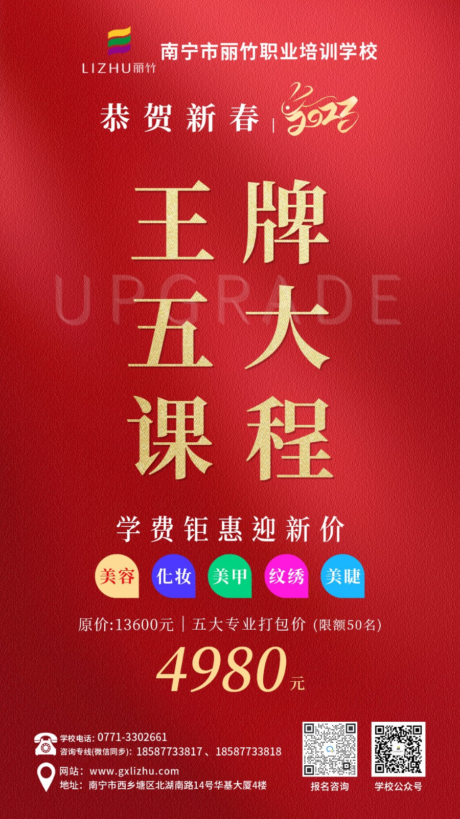 南寧美容美發(fā)師學(xué)校、南寧培訓(xùn)化妝美甲分享:2月1日,麗竹學(xué)校正式開學(xué)啦!所以,如果你想在南寧學(xué)美容美發(fā)化妝美甲,或是或是想知道南寧學(xué)美容美發(fā)多少錢?南寧學(xué)化妝美甲哪里學(xué)費便宜?麗竹職業(yè)培訓(xùn)學(xué)校,大品牌,有口碑,值得信賴!