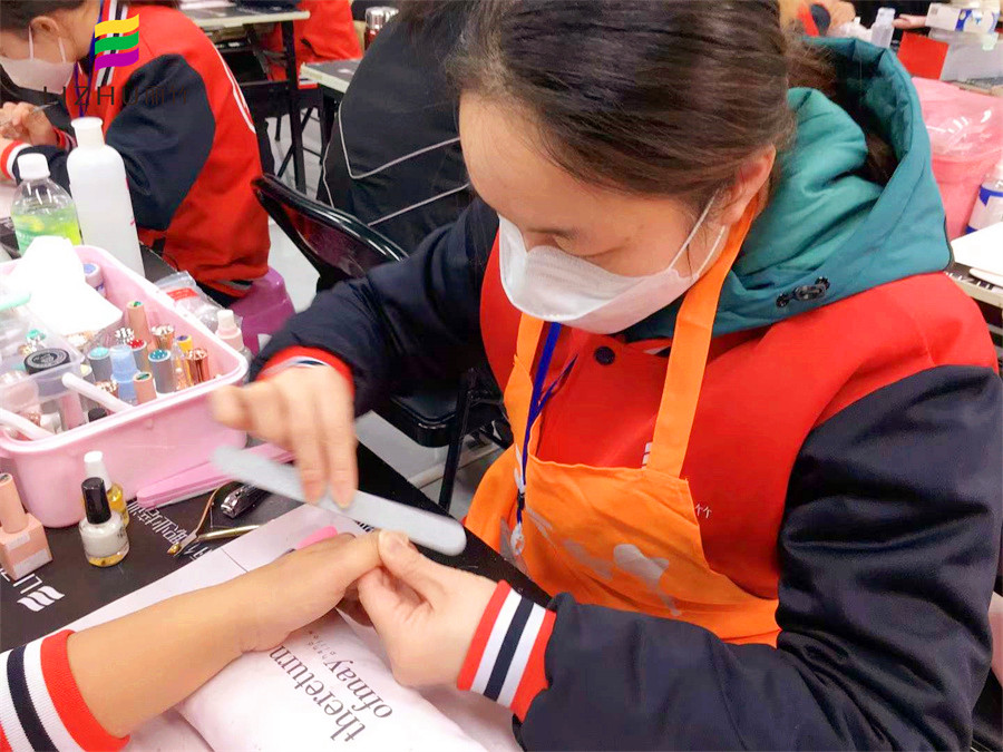 南寧美甲專業(yè)學員進行甲片形狀打磨