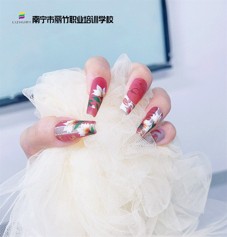 南寧學美甲職業(yè)、南寧培訓美甲造型:當玉蘭花和中國紅相互碰撞時,會擦出什么樣的火花呢?想知道它們的奇妙反應,不如來看看南寧美甲正規(guī)學校-南寧美甲款式造型班繪制的國風玉蘭花美甲。隨著地攤經濟的興起,美甲也成為了很多人選擇創(chuàng)業(yè)的渠道。所以,如果你對美甲有興趣,不防到麗竹學校美甲專業(yè)試聽和參觀,了解更多詳情吧!