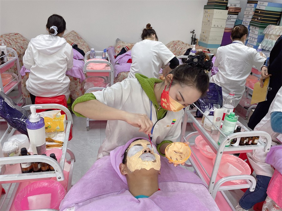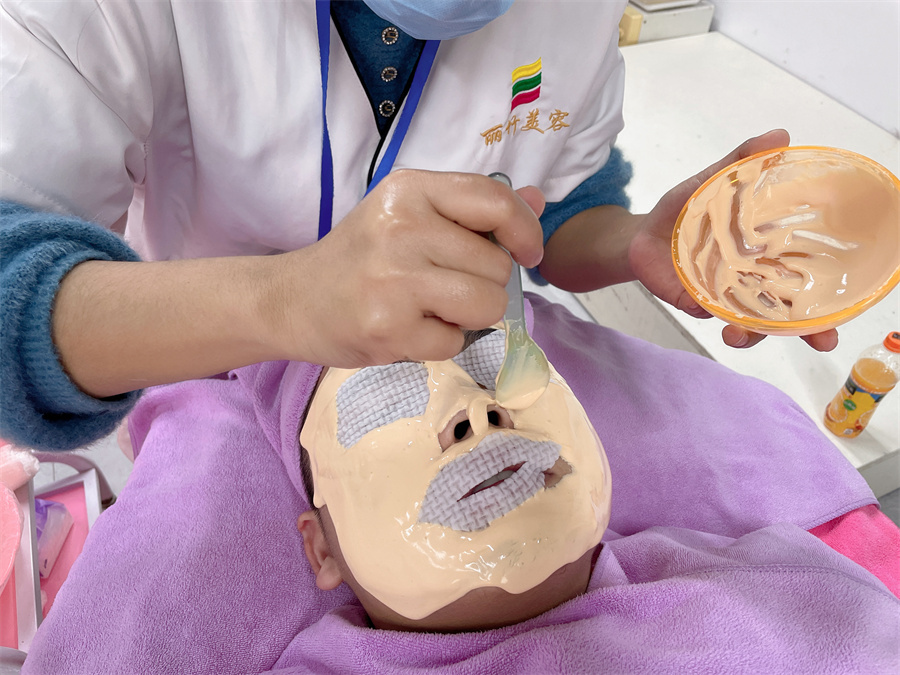 南寧學(xué)面部皮膚管理、南寧美容培訓(xùn)面部護(hù)膚:提起面部補(bǔ)水,想必大家都會選擇通過敷面膜去給肌膚補(bǔ)充水份和營養(yǎng)。其中,相對于其他類型的面膜來說,敷軟膜粉清潔和補(bǔ)水效果則較為明顯。 而現(xiàn)在南寧美容皮膚管理學(xué)校(麗竹皮膚管理全科班)的同學(xué)們正在進(jìn)行敷軟膜粉的真人實(shí)操練習(xí),就讓我們?nèi)ヂ犅牽捶筌浤し鄣暮锰幇桑?br/>