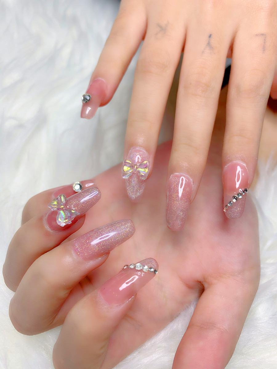 南寧美甲款式造型班作品---水晶蝴蝶結美甲