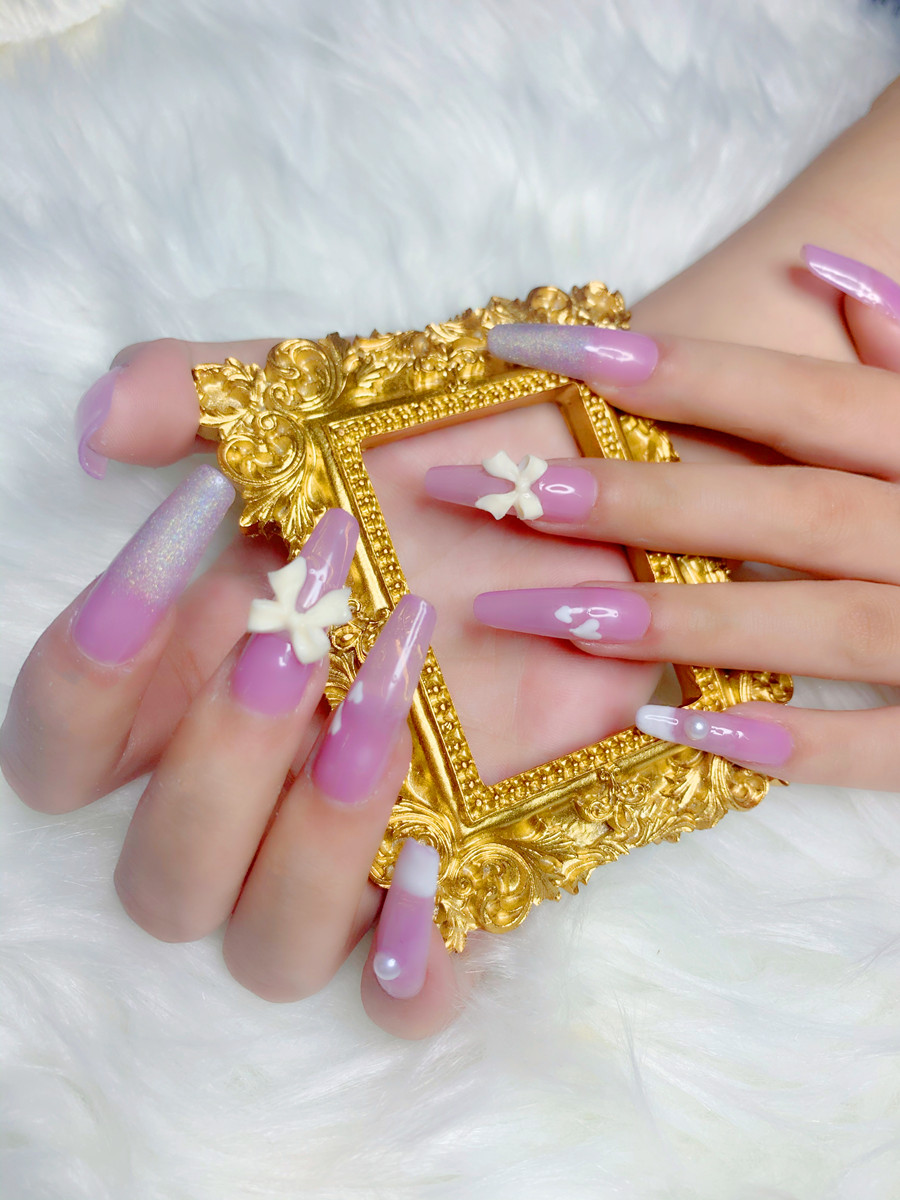 南寧美甲進修作品---少女蝴蝶結美甲