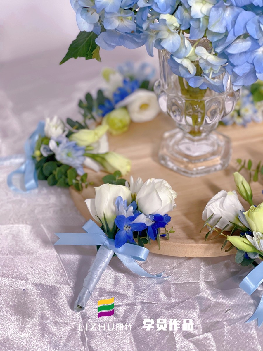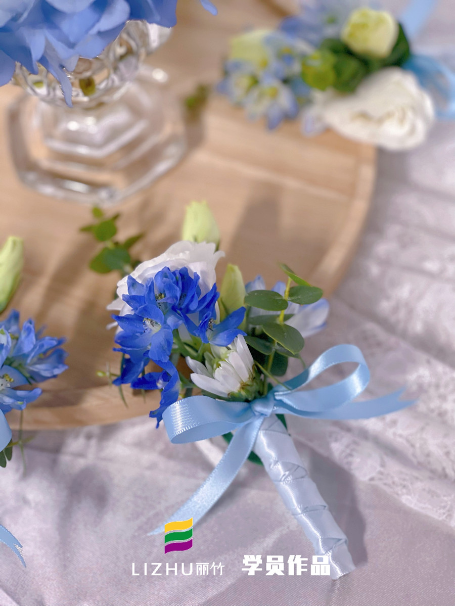 而在剛結(jié)束的南寧花藝學(xué)校-麗竹花藝學(xué)校胸花課程上,學(xué)員們根據(jù)現(xiàn)有的花材制作了藍(lán)色清新胸花,和我們一起聽聽她們制作的方法吧!