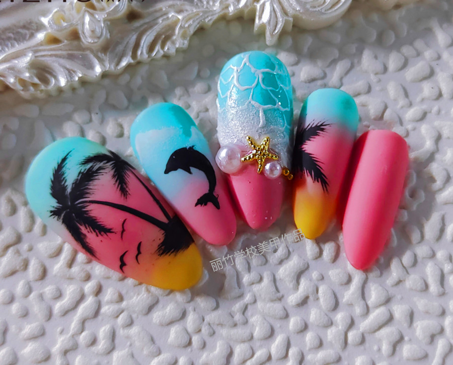 廣西美甲、零基礎(chǔ)美甲培訓(xùn):陽(yáng)光,沙灘,海豚,椰樹(shù),海鷗,海星……這妥妥的夏日標(biāo)配,你豈能錯(cuò)過(guò)?現(xiàn)在去不了海邊的你,有沒(méi)有想過(guò)把這些海的元素繪制成一副讓人看一眼就心情大好的美甲款式呢?不如先來(lái)看看廣西美甲進(jìn)修班同學(xué)們繪制的夏日海灘美甲作品吧!