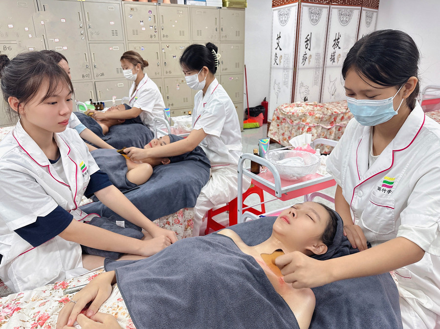 廣西美容美體師:在今天的廣西美容課堂實(shí)訓(xùn)練習(xí)中,和廣西美容培訓(xùn)班的同學(xué)們跟著老師一起去學(xué)習(xí)下肩頸刮痧的好處吧!此外,如果你想知道廣西哪里可以學(xué)經(jīng)絡(luò)養(yǎng)生?歡迎了解廣西美容專業(yè)培訓(xùn)學(xué)校 -麗竹學(xué)校-中醫(yī)經(jīng)絡(luò)養(yǎng)生全科班的課程內(nèi)容,同時(shí)也歡迎大家到校參觀和試聽。