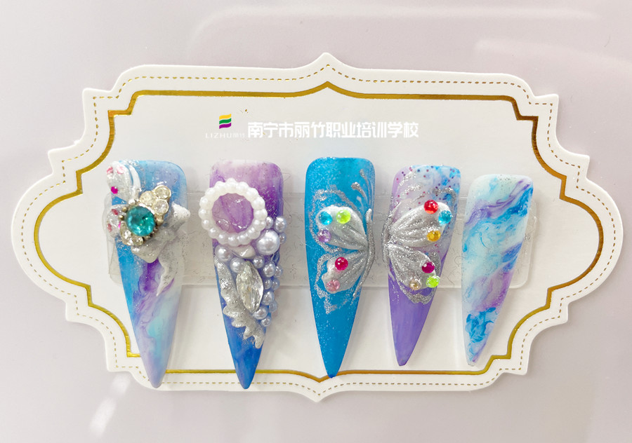 廣西美甲造型培訓(xùn)、廣西美甲:你有想過,當(dāng)你通過零基礎(chǔ)美甲教學(xué)的培訓(xùn)后,把翩翩欲飛的蝴蝶通過美甲技術(shù)定格在你的指尖上時,能有多美嗎?廣西美甲職業(yè)技術(shù)學(xué)校-廣西美甲款式進(jìn)修班-麗竹美甲學(xué)校的同學(xué)們已經(jīng)完成了自己的作品,和我們一起去看看超火爆的蝴蝶美甲吧!