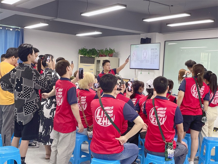 南寧美甲學(xué)校學(xué)員觀看老師示范手法,并及時(shí)進(jìn)行錄制