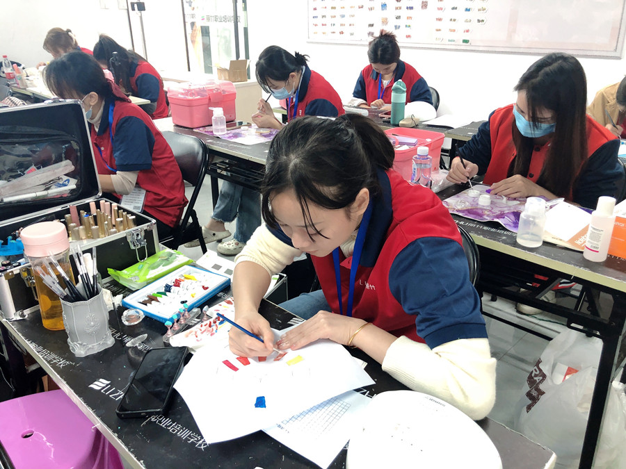 廣西美甲師、廣西美甲學(xué)習(xí):今天,廣西美甲職業(yè)技術(shù)學(xué)校的老師正在教授同學(xué)們常用的美甲色彩搭配方法,感興趣的你趕緊和廣西美甲進修班的同學(xué)們一起跟著老師學(xué)習(xí)廣西美甲專業(yè)課程吧!
