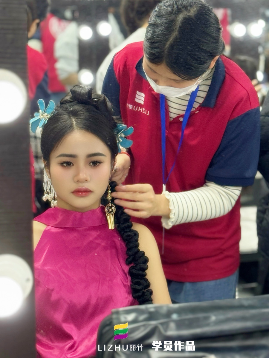 雖然晨袍沒有婚紗還有禮服那般隆重華麗,但即便是簡潔的剪裁服飾,在配上極具新中式韻味的得發(fā)型設計于妝容,一樣可以大放異彩。而麗竹化妝造型進修班的同學們現(xiàn)在正在老師的指導下進行晨袍新娘造型的打造,讓我們一起去看看吧!