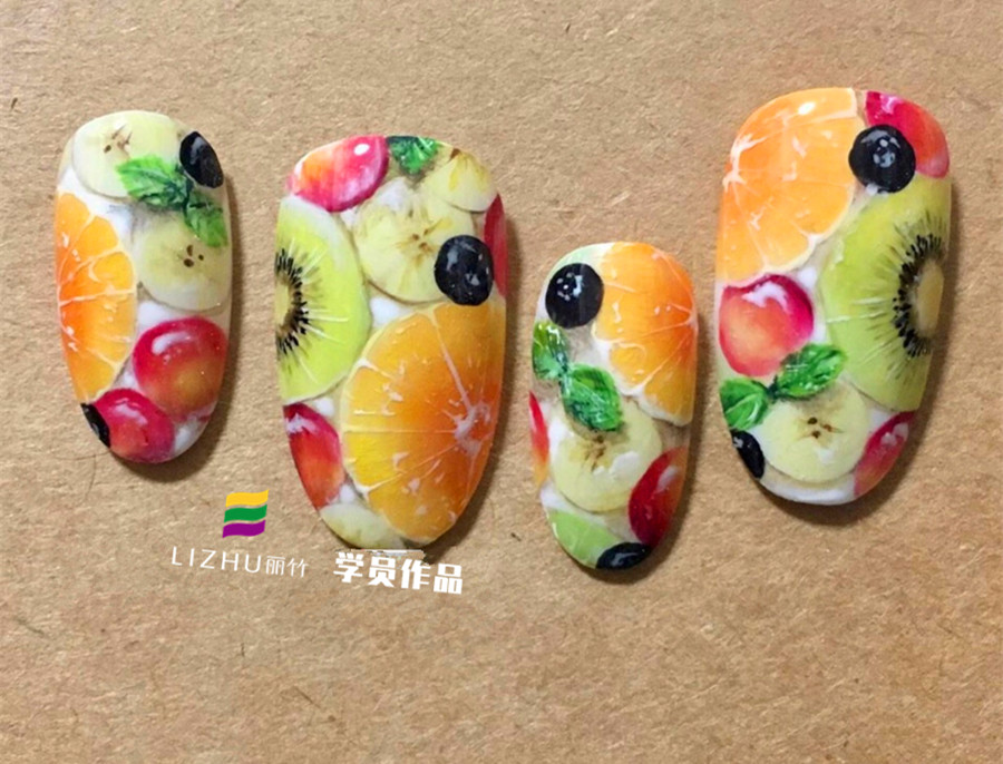 南寧美甲師教學(麗竹美甲學校作品):橘子獼猴桃美甲
