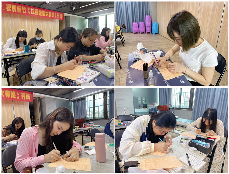 南寧紋繡學校排行榜、南寧學眉眼唇:南寧眉眼唇造型學校(麗竹紋繡全 能大師班)的課程已經進入到第四天的學習。有了前面的理論自己在仿皮操作上積累的手法,在接下來的南寧紋繡課堂上,同學們將正式進入到真人實操的練習。