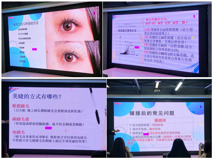 雖然此次是南寧美睫進修課程,但是朱斌老師并沒有因此就忽略了美睫基礎(chǔ)理論知識的學習。課程剛開始,老師就通過課件圖片的方式,快速挑選一些日常美睫操作中需要注意的事項,為同學們進行講解,以及在現(xiàn)場為同學們提出的問題進行解答。