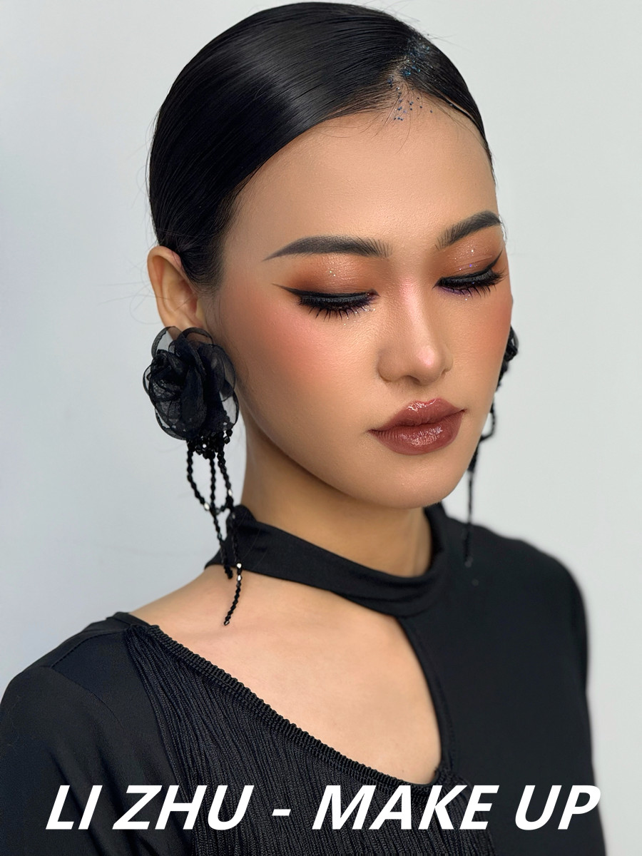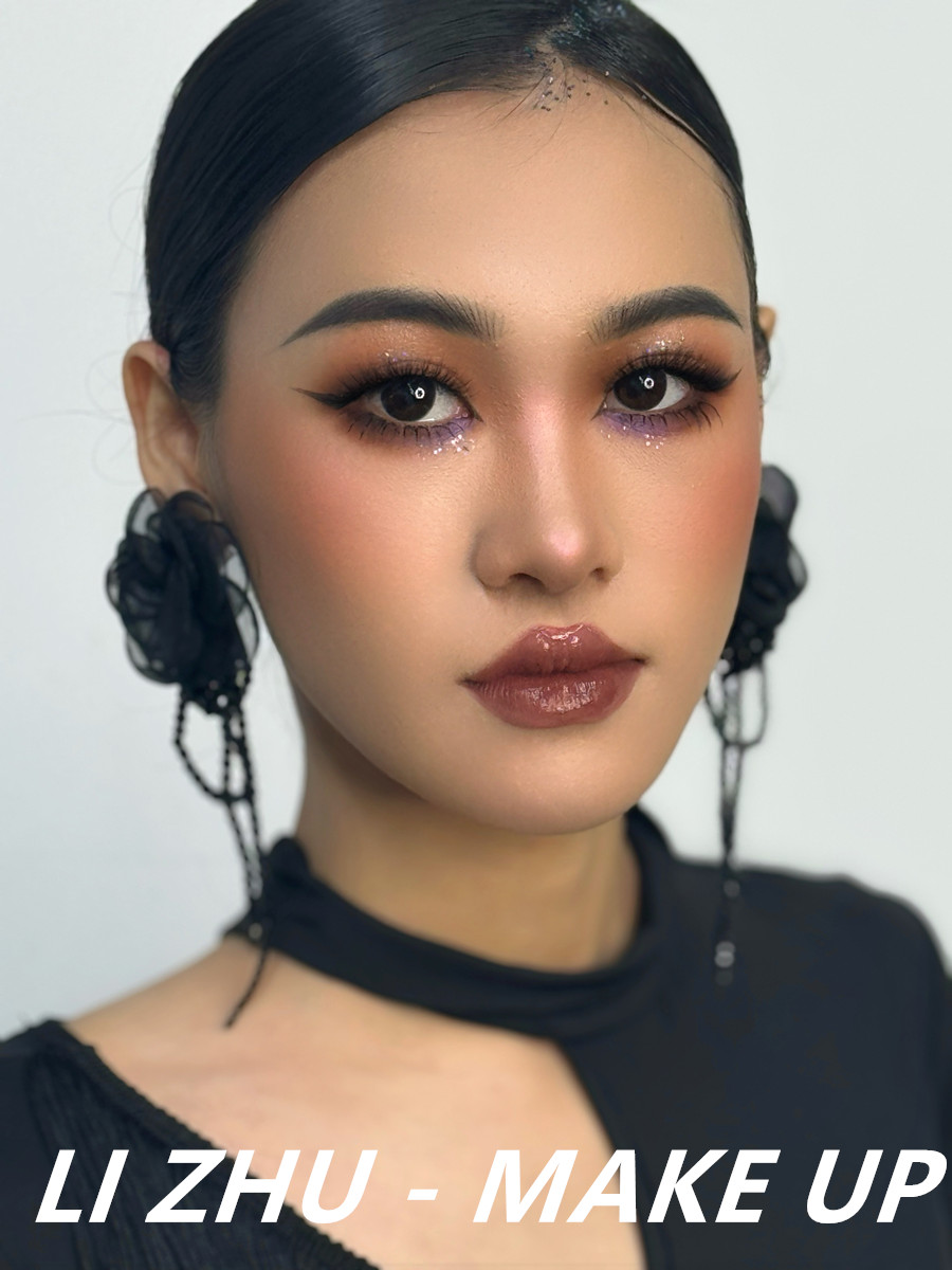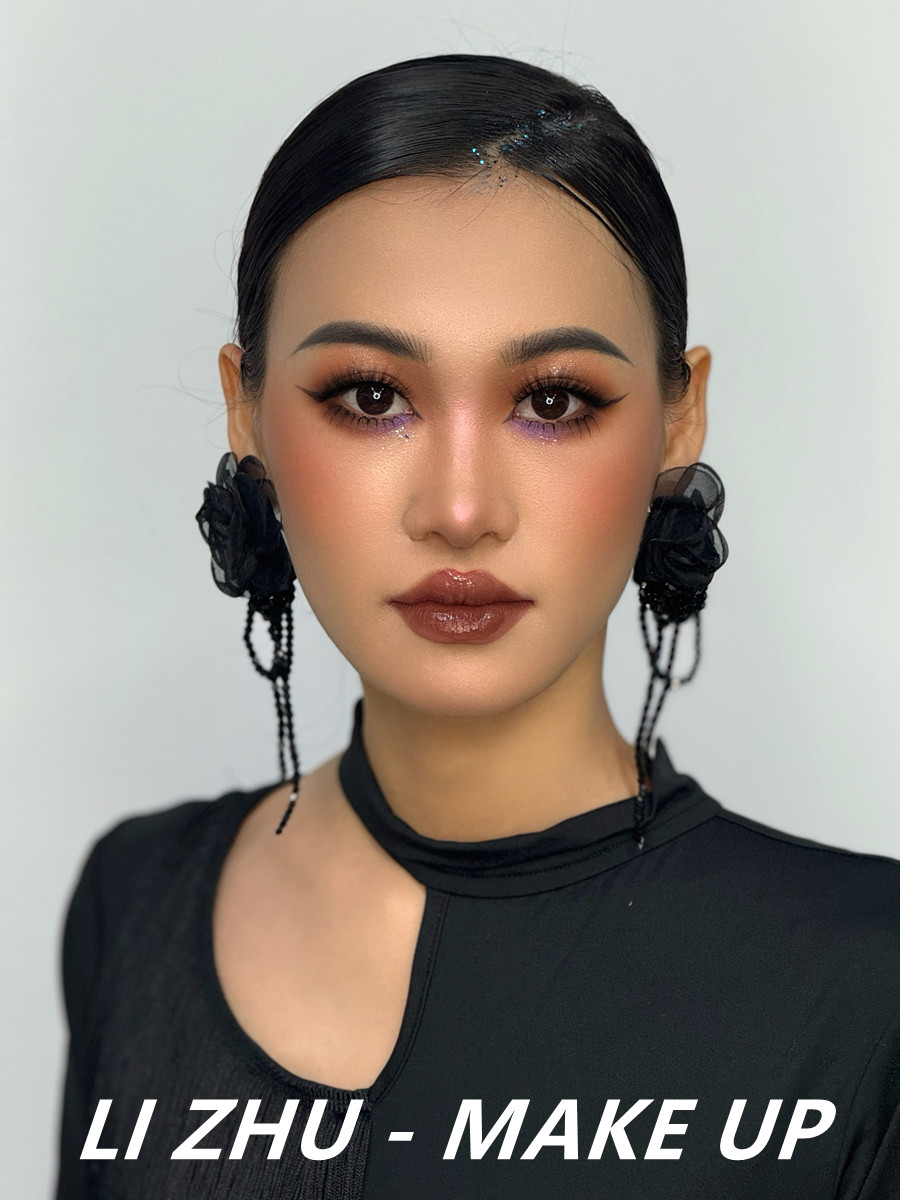 南寧學(xué)美妝、南寧美妝培訓(xùn)排行榜:選擇深一號(hào)的粉底進(jìn)行底妝創(chuàng)作,進(jìn)而打造出陽光小麥的健康膚色。細(xì)致描繪的輕度煙熏眼妝,配上時(shí)下流行的“豬肝配豆沙”的唇妝,以及自然清秀的眉形設(shè)計(jì),外加網(wǎng)紗黑色花朵耳環(huán)以及黑色禮服裙的裝飾,共同打造出了屬于東方性感美的輕歐美造型。
