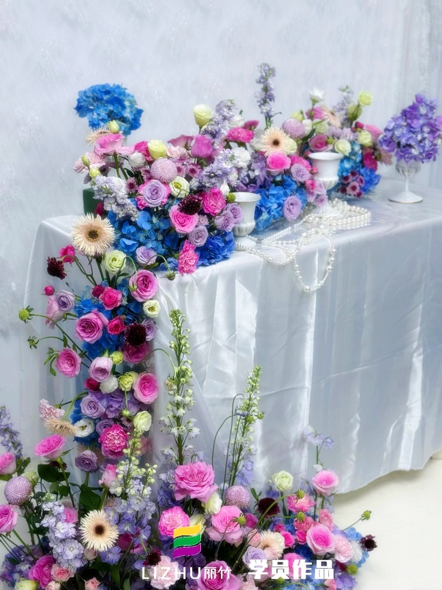 學(xué)花藝沒(méi)經(jīng)驗(yàn)、廣西花藝培訓(xùn)排名:廣西花藝師學(xué)校(麗竹花藝師學(xué)校)就和大家一起去看看廣西花藝專業(yè)課程里關(guān)于什么是瀑布桌花的內(nèi)容吧!選用西式長(zhǎng)條桌,之后在桌面中間將已經(jīng)設(shè)計(jì)好的花束,有序長(zhǎng)長(zhǎng)地鋪陳開(kāi)來(lái)。之后,在桌子的兩頭特意設(shè)計(jì)成瀑布桌花鏈接地面,這樣能夠更好營(yíng)造浪味唯美的氛圍。