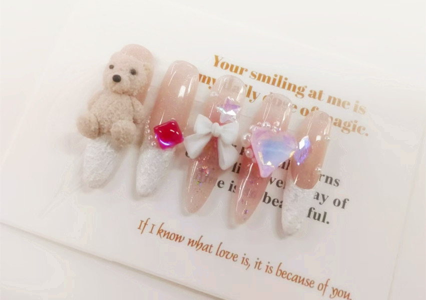 立體小熊雕花美甲,用作品告訴你南寧學(xué)美甲去哪里?