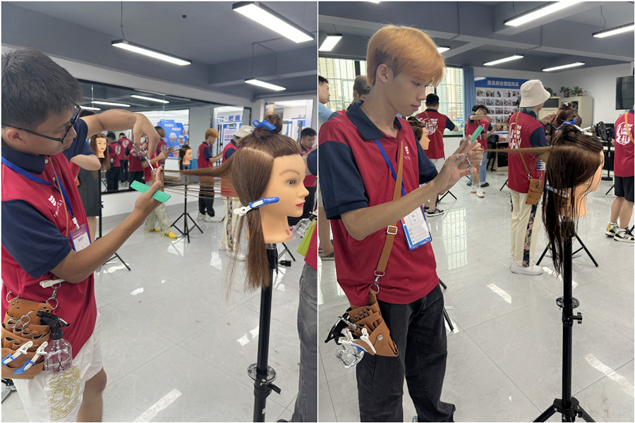 零開始學(xué)剪發(fā)、南寧剪發(fā)學(xué)習(xí):在今天南寧美發(fā)剪發(fā)職業(yè)培訓(xùn)學(xué)校(麗竹美發(fā)剪發(fā)職業(yè)培訓(xùn)學(xué)校)的課堂上,老師就通過假頭模進(jìn)行手法示范,讓南寧美發(fā)剪裁培訓(xùn)班的同學(xué)們了解什么是垂直地面和垂直頭皮修剪。年齡小,不知道考不上高中可以讀什么學(xué)校?也不知道考不上大學(xué)學(xué)什么技術(shù)好?那不如到麗竹學(xué)校來看看吧!