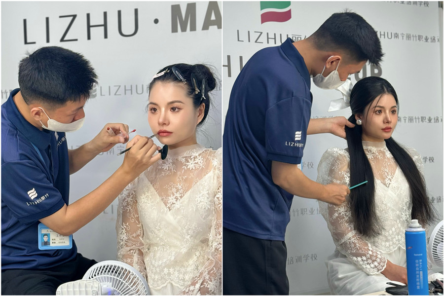而在南寧新娘化妝造型學(xué)校(麗竹新娘化妝造型學(xué)校)里南寧新娘化妝進修班的教室,老師正在為同學(xué)們進行時尚簡約新娘造型手法演示的同時,還針對需要注意的細節(jié)進行了詳細的講解,趕緊一起去看看吧!