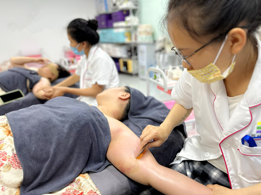 刮痧時,應避風和注意保暖治療刮痧時應避風,注意保暖。室溫較低時應盡量減少暴露部位,夏季高溫時不可在電扇處或有對流風處刮痧。刮痧后飲熱水一杯,能促進新陳代謝,加速代謝產(chǎn)物的排出。刮痧后,建議在3-4個小時后在沐浴。