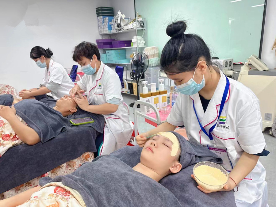 南寧美容賽事、南寧美容技能考核:相對于美發(fā),化妝,美甲專業(yè)的比賽項(xiàng)目內(nèi)容和評分標(biāo)準(zhǔn)來說,美容項(xiàng)目就顯得有些“冗長”。但無論簡單與否,在面對這場一長串內(nèi)容準(zhǔn)則時,在面對同學(xué)間的同臺競技,南寧美容皮膚管理學(xué)校的同學(xué)也都拿出了超過一百的努力在練習(xí)。