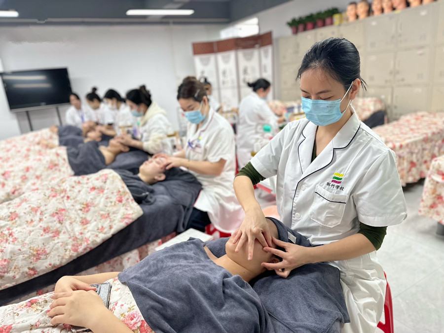 南寧面部護(hù)理、南寧美容護(hù)膚:面部護(hù)理八大基礎(chǔ)手法:安撫、跪揉、剪刀手、圈揉、拉抹、輪指、提拉、提拔。為了檢驗(yàn)這段時間南寧美容面部基礎(chǔ)班學(xué)員的學(xué)習(xí)成果,南寧美容師職校(麗竹美容師職校)在今天進(jìn)行了面部手法隨堂檢測。