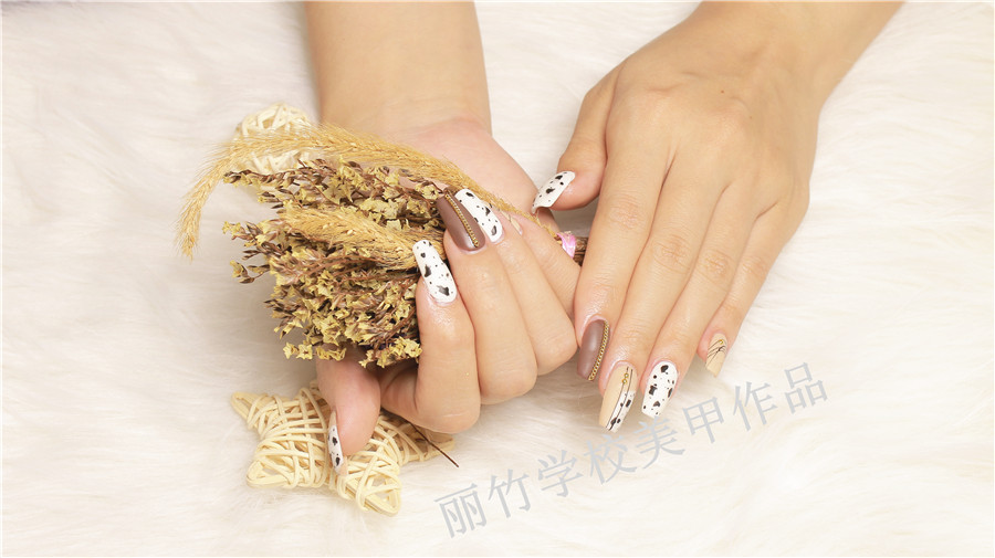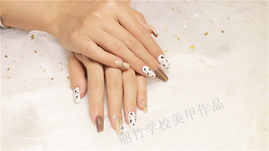 麗竹學校美甲作品:牛奶巧克力彩繪美甲