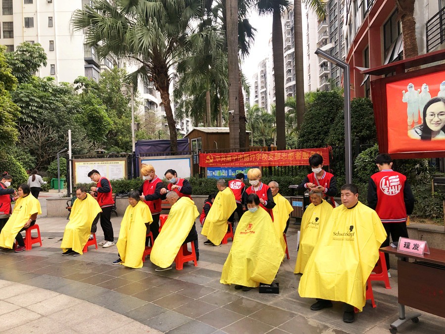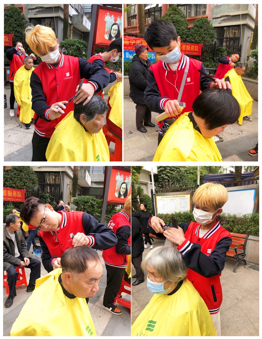 學(xué)員江南華府免費理發(fā) | 廣西南寧美發(fā)學(xué)校實踐教學(xué)