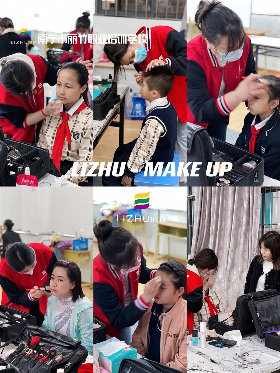 廣西彩妝班外出活動(dòng)、廣西化妝學(xué)校實(shí)踐:學(xué)以致用,方有用!廣西彩妝造型化妝學(xué)校-麗竹彩妝造型學(xué)校為了讓學(xué)員們可以將課堂學(xué)到的技術(shù),真正運(yùn)用到實(shí)踐當(dāng)中,近日組織學(xué)員為民盟南寧市委2023文藝演出的表演人員提供化妝服務(wù)。