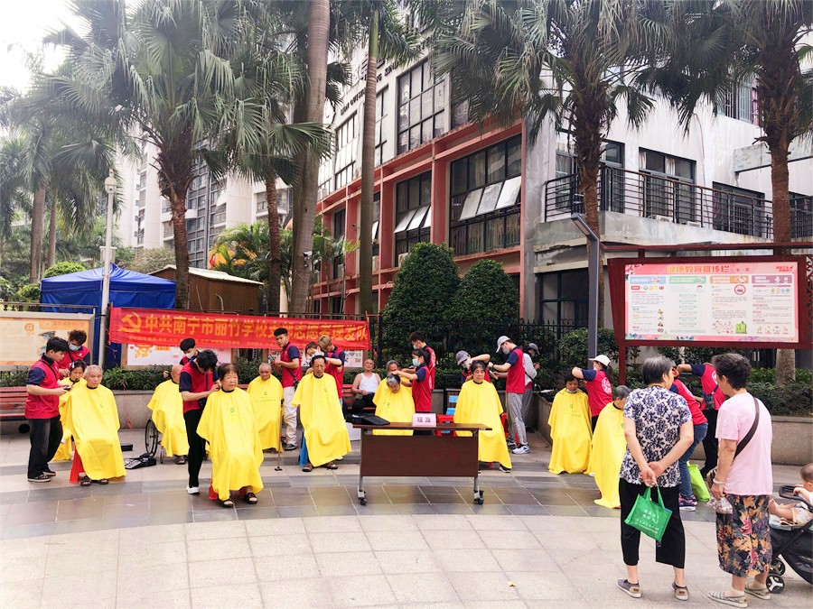 2023年5月24日,南寧美發(fā)學(xué)校志愿服務(wù)走入北湖安居小區(qū)免費(fèi)剪發(fā)