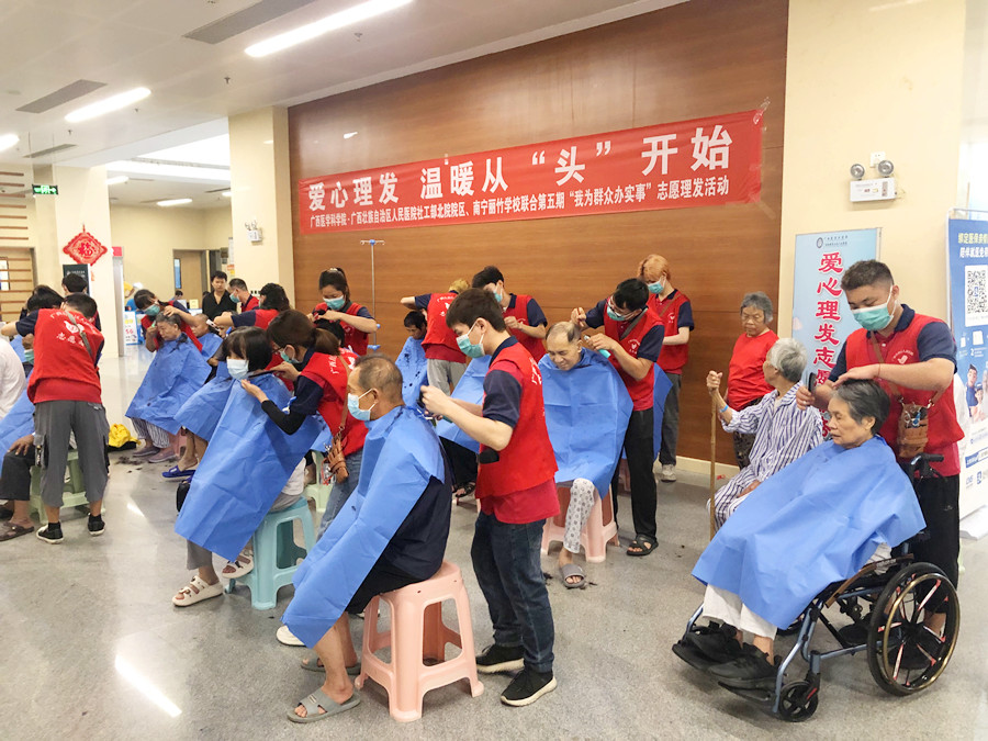 廣西美發(fā)學(xué)校愛心義剪、廣西美發(fā)學(xué)校醫(yī)院公益活動(dòng):時(shí)代擎起了雷鋒,雷鋒輝煌了時(shí)代。7月28日,中共麗竹學(xué)校學(xué)校支部志愿者服務(wù)隊(duì)主動(dòng)申請(qǐng)參加廣西學(xué)科學(xué)院·廣西壯族自治區(qū)人們醫(yī)院社工部北院院區(qū)共同組織的第五期“我為群眾辦實(shí)事”系列---愛心理發(fā),溫暖從“頭”開始為主題的志愿者理發(fā)活動(dòng)。