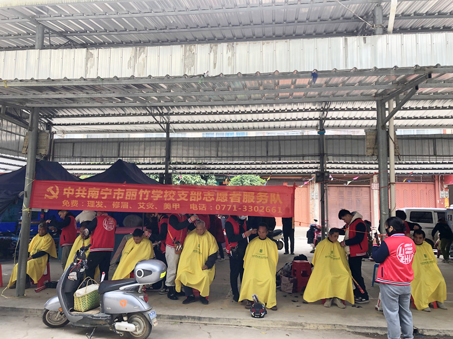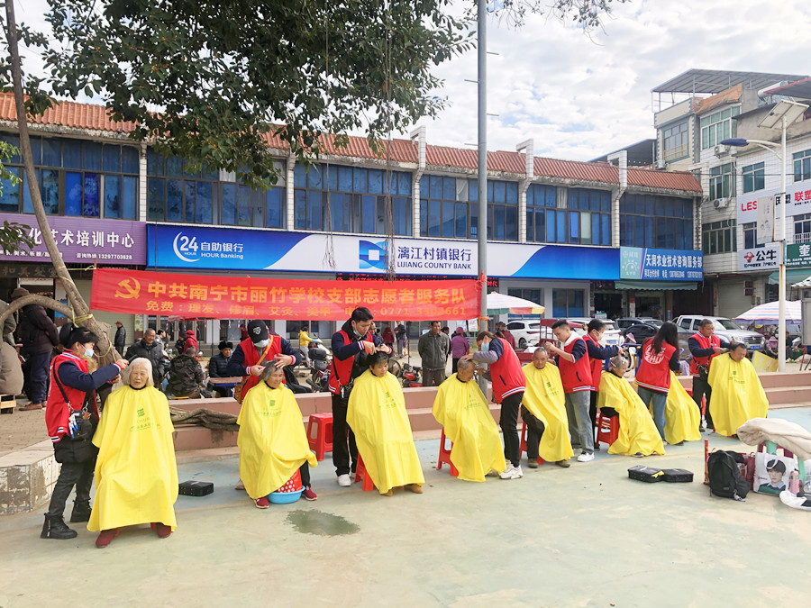 南寧美發(fā)社會實踐報告、南寧美發(fā)教學外出:霜凍籠罩在上空,呼呼刮來的冷風,連綿不斷的陰雨讓本就寒冷的氣溫變得更加刺骨難耐。但即便是在這樣的天氣下,南寧美發(fā)職校志愿者服務隊的同學們依舊走訪在各大周邊城鎮(zhèn),為群眾們進行免費理發(fā)服務。下面,就請跟著南寧美發(fā)造型培訓(麗竹美發(fā)造型培訓)的鏡頭一起去看看同學們都去了哪些地方吧!
