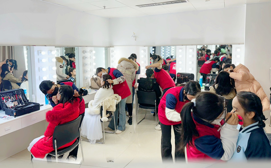 廣西化妝學(xué)校外出、廣西公益化妝活動(dòng):12月23日,廣西彩妝造型專業(yè)學(xué)校(麗竹彩妝培訓(xùn))受邀到南寧群眾藝術(shù)館,為在這里舉辦的“ 民盟南寧市委2024迎新文藝演出”的演藝人員們提供化妝服務(wù)。