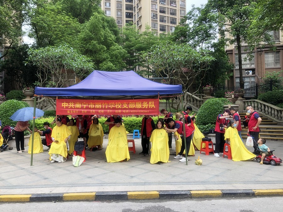 2024年4月19日,廣西美發(fā)志愿者服務(wù)隊為普羅旺斯小區(qū)進行免費理發(fā)