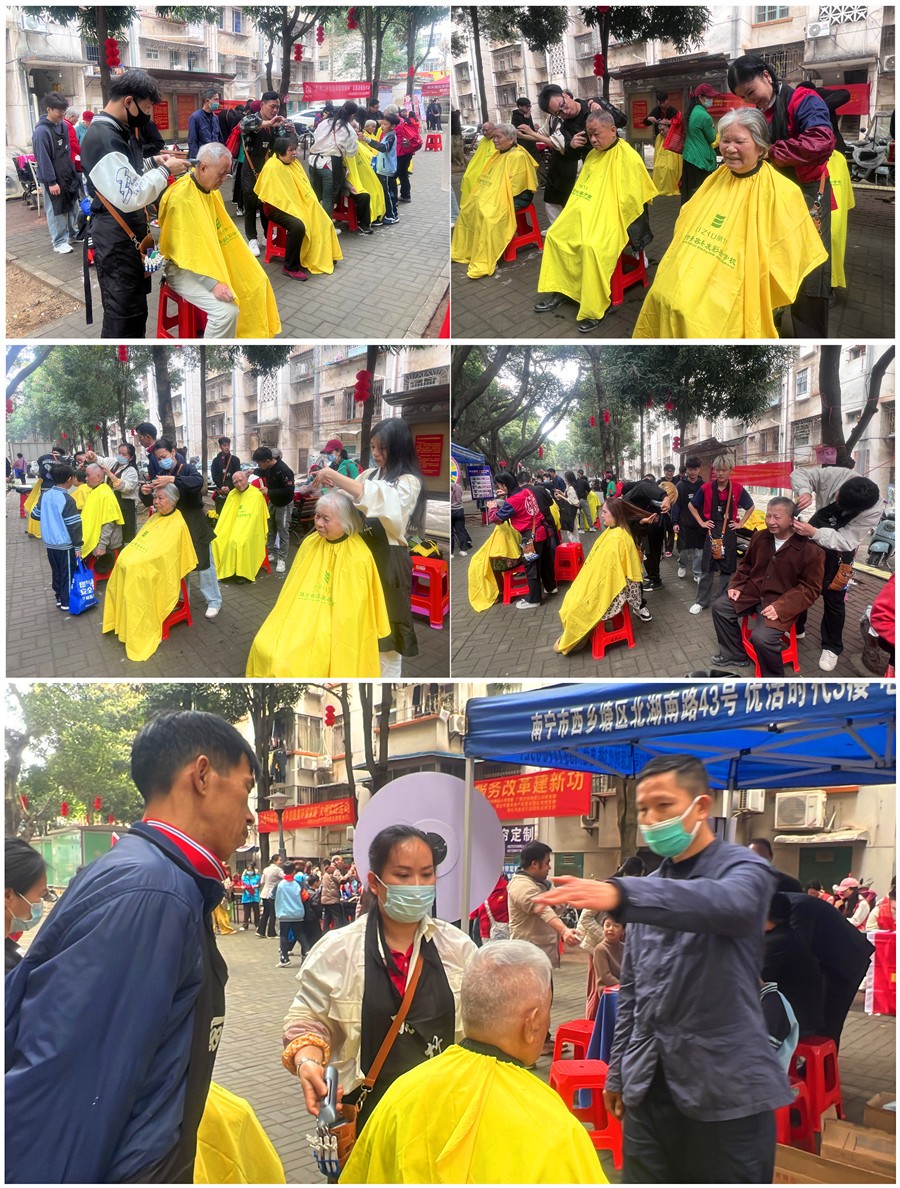 二月二義剪、廣西免費理發(fā)二月二:民諺說“二月二剃龍頭,一年都有精神頭”。在這天,廣西美發(fā)職業(yè)學(xué)校-麗竹學(xué)校的美發(fā)志愿者們也在老師的帶領(lǐng)下來到“南寧市地委大院”以及“南寧之夜”進(jìn)行愛心義剪活動。
